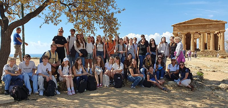 Aus Schülersicht, eine rundum gewinnbringende Fahrt: "Es war ein sehr schönes, lehrreiches Erlebnis. Wir haben viel Neues über die griechische und römische Zeit erfahren. Besonders die Besichtigung des griechischen Theaters und des römischen Amphitheaters hat mir sehr gefallen. An diesem Ort haben wir auch gemeinsam "unser" Gedicht, "Die Bürgschaft" von Schiller, den italienischen Schülern vorgetragen.", fasst die Achtklässlerin Svea zusammen.