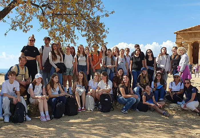 Im Rahmen eines 10-tägigen Erasmus-Projektes erkundet eine Schülergruppe des Gymnasiums Wilhelmsdorf Sizilien. Gemeinsam mit ihren Lehrern erleben sie die Insel als Schmelztiegel der Völker und begegnen dieser Vielfalt aus dem Blickwinkel verschiedener Fächer. Ein eindrucksvoller Austausch mit Gymnasiasten aus Syrakus, die Deutsch als zweite Fremdsprache lernen.