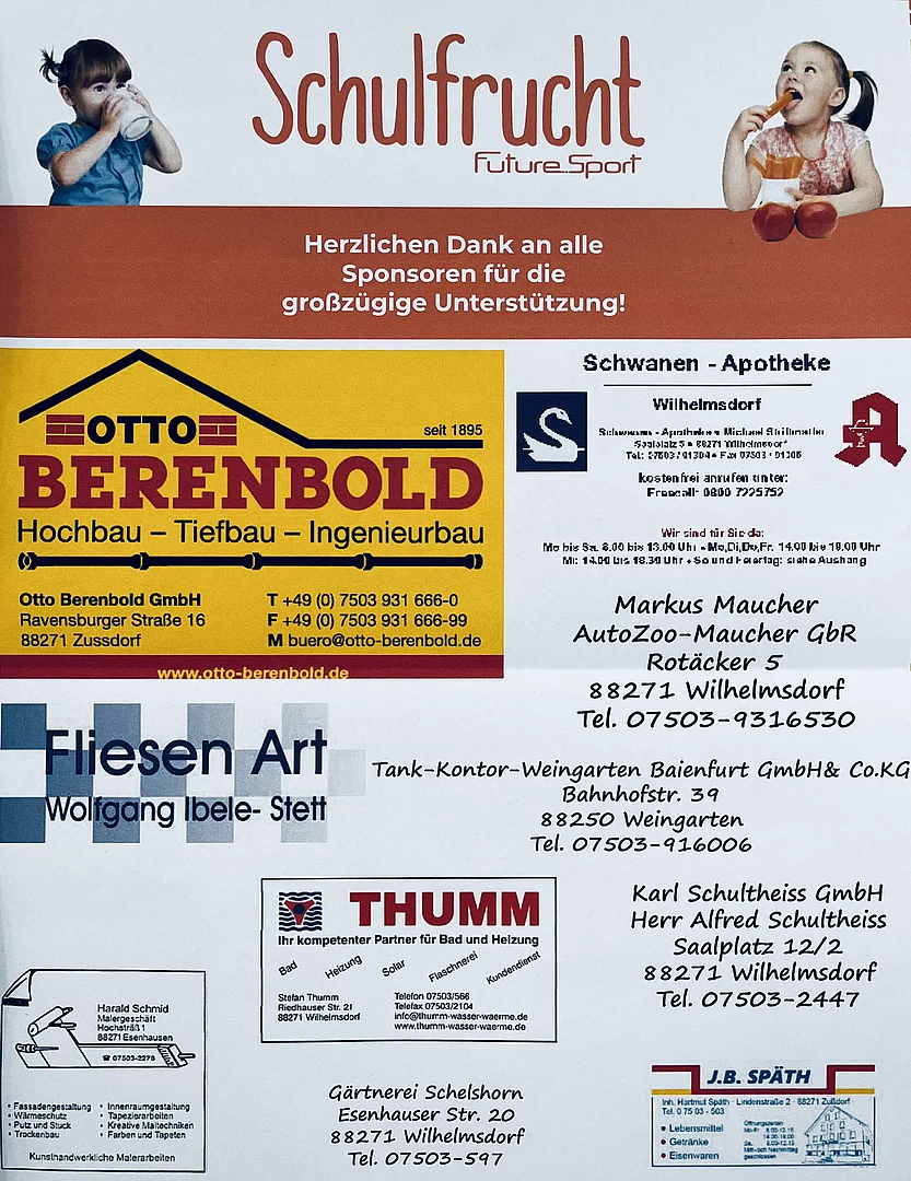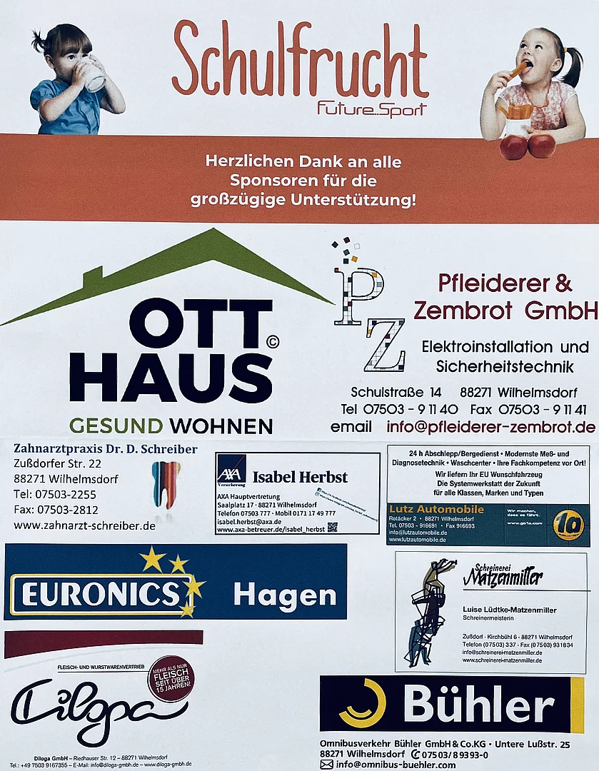 Der kostenlose Vitaminservice der Schule ist möglich dank zahlreicher lokaler Sponsoren, denen die Bereitstellung eines gesunden Pausensnacks im Schulalltag ein Anliegen ist. Sowohl Kollegium als auch Schülerschaft möchten sich herzlich für dieses Engagement bedanken.