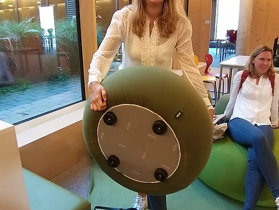 Dabei standen nicht nur die jeweiligen Raumkonzepte im Fokus, sondern auch die Funktionalität der Möbel. "Eine moderne Lernlandschaft, wie wir sie in den neuen Räumen planen, braucht Möbel, die für die verschiednen Lernphasen und -Situationen flexibel einsetzbar sind. Einfach nur Tische und Stühle erfüllen da nicht mehr ihren Zweck", erklärt Michael Dörmann, Schulleiter des Gymnasiums Wilhelmsdorf, den Hintergrund der Besichtigungstour. Wie schon seit Beginn des Projektes "Schulbauerweiterung" ist das Gymnasium begeistert über die tolle Zusammenarbeit mit der Gemeindeverwaltung: "Wir sind Frau Flucht und ihrem Team für diese Erkundungsreise sehr dankbar. Die neuen Schulräume nehmen in unserem Kopf jetzt richtig Gestalt an.", freut sich Michael Dörmann. Zum Schuljahreswechsel im kommenden Jahr sollen die Jahrgangsstufen 5 bis 7 den Neubau beziehen, sowie die neuen Fachräume genutzt werden können.
