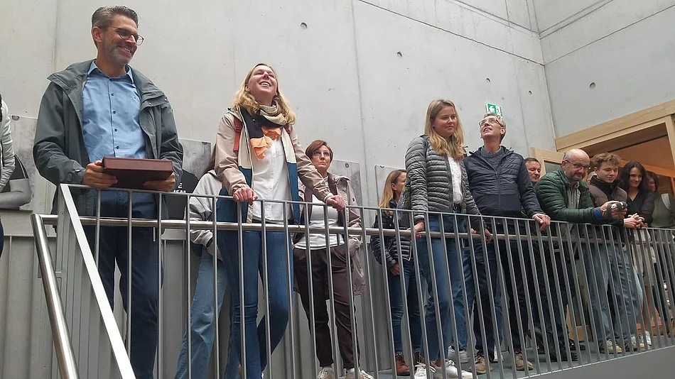 Der Rohbau unserer Schulerweiterung ist fertig, aber wie sollen die neuen Klassenzimmer und Lernbereiche ausgestattet werden? Dieser Frage ging eine Delegation aus Schulleitung und Lehrern des Gymnasiums und der Realschule Wilhelmsdorf nach und besuchte mit Bürgermeisterin Sandra Flucht und Bauamtsleiter Wilhelm Birkhofer Schulen der Umgebung. Begleitet von Schülervertreter*innen und unter Führung des Architekten Bernd Brösecke besuchte das Team Schulen in Leutkirch, am Bodensee und in Vorarlberg.