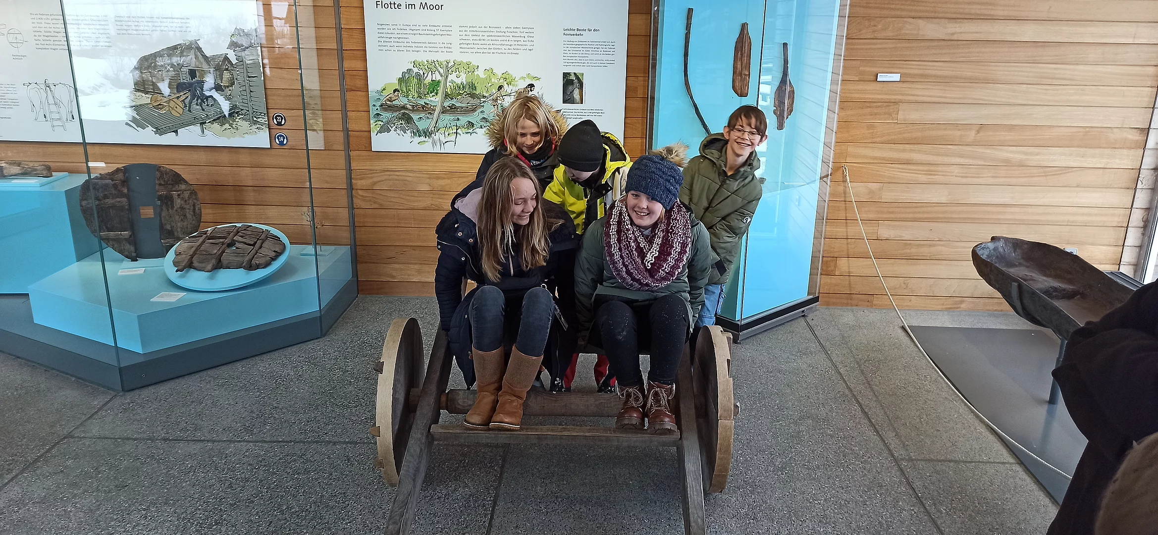 Eine jahrgangsübergreifende Schülergruppe besucht im Zuge des Freien Kursangebots das Federseemuseum in Bad Buchau.