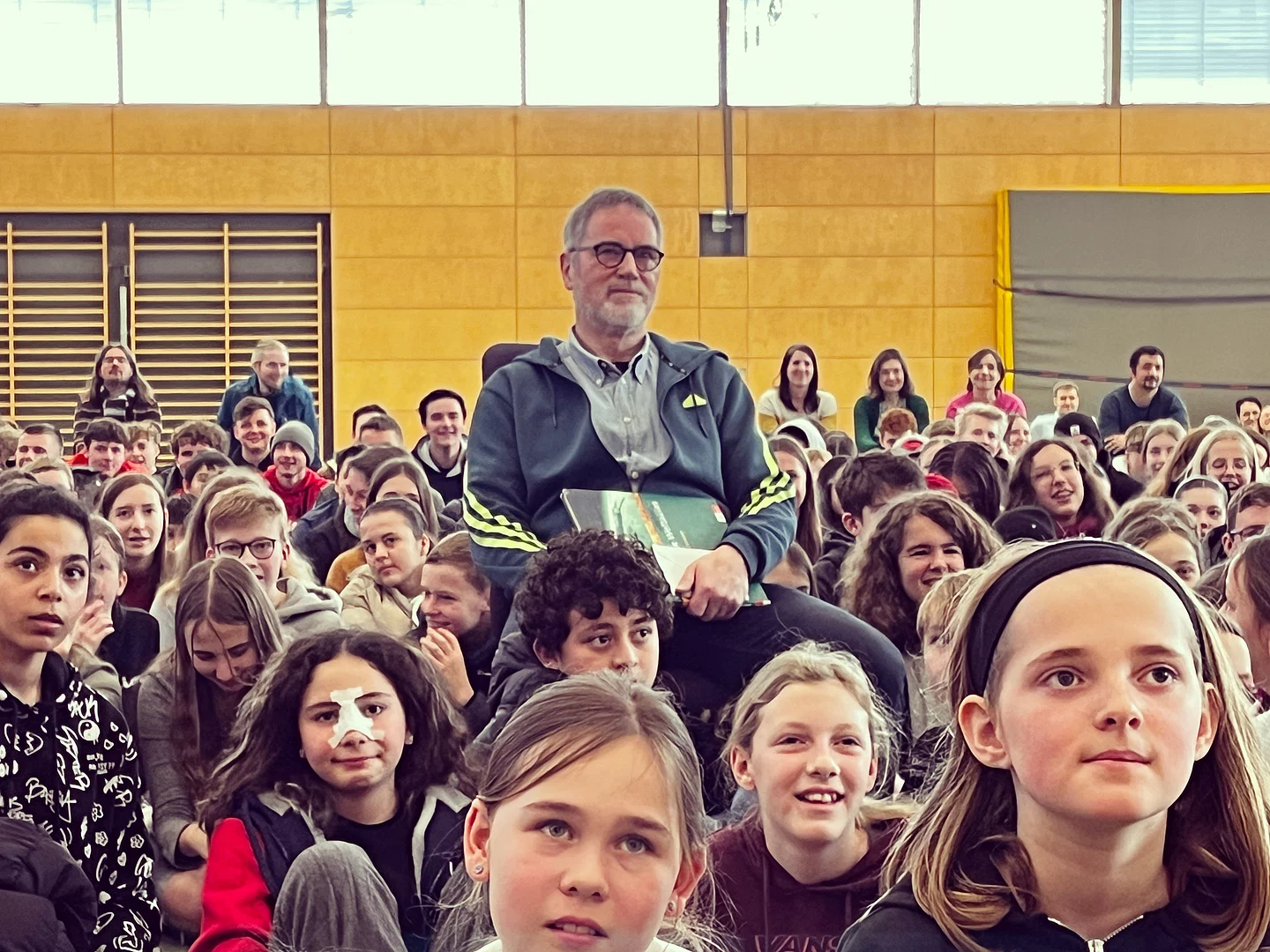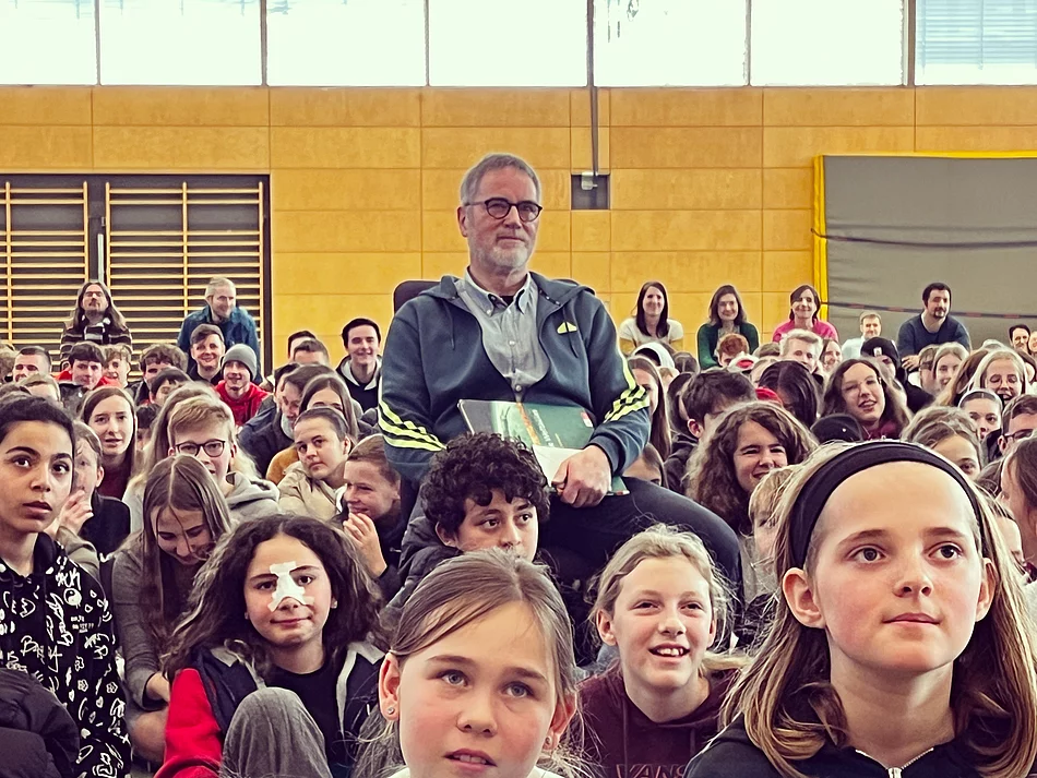 Den emotionalen Abschluss der Versammlung bildete anschließend die Verabschiedung von Herrn Wurster, dessen lange Schulkarriere am Gymnasium von der SMV mit einem liebevoll zusammengestellten Kurzfilm gewürdigt wurde. Herr Wurster ließ es sich seinerseits auch nicht nehmen, sich mit einem dicken Dankeschön und einigen herzlichen Wünschen von der gesamten Schülerschaft zu verabschieden.
