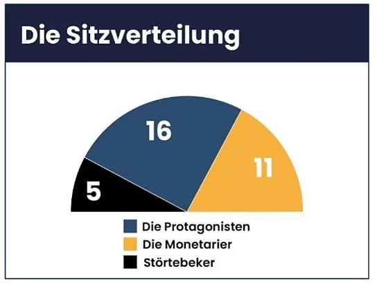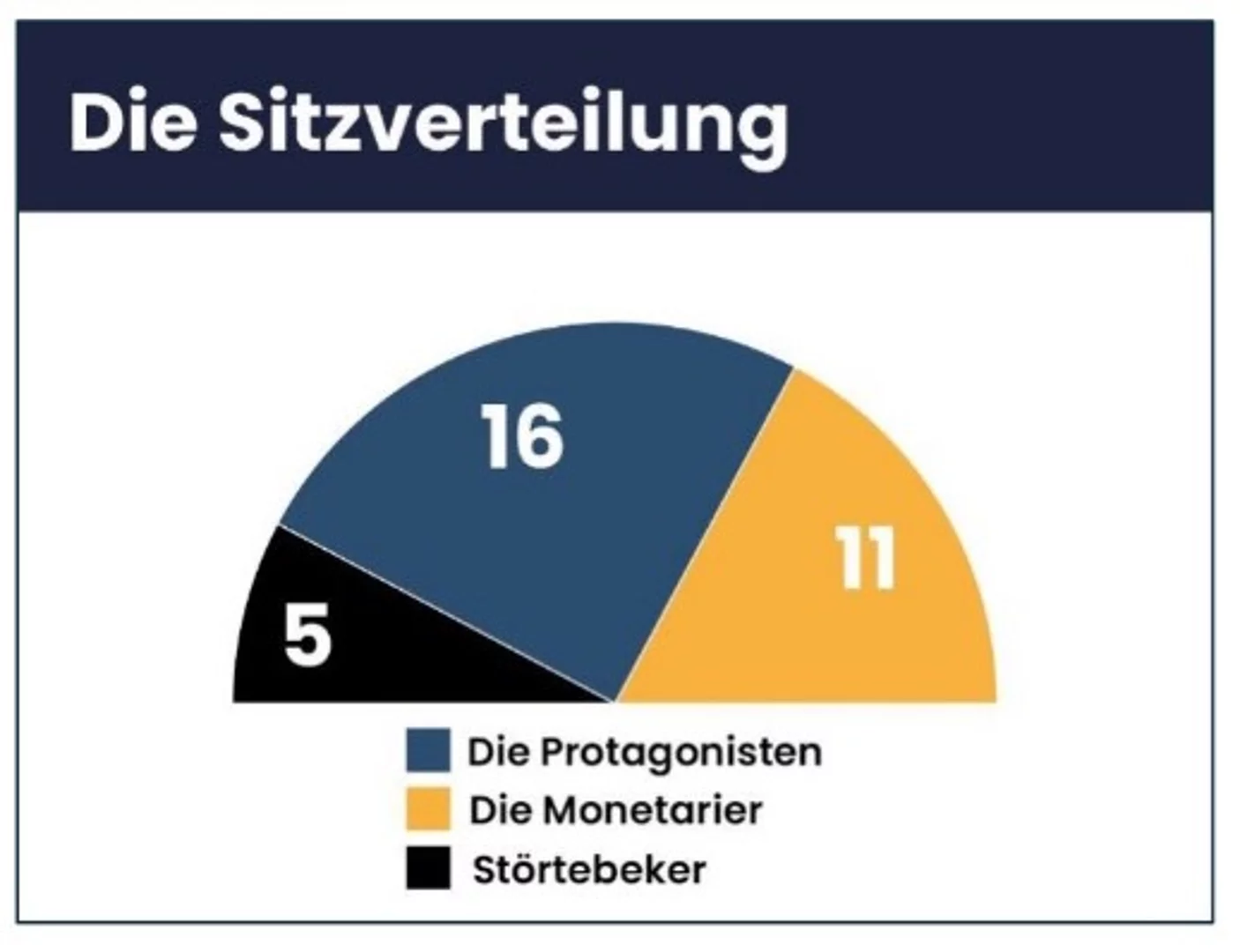 Mit 31,4% Prozent sicherten sich die wirtschaftsliberalen Monetarier knapp ein Drittel aller Wählerstimmen und belohnten sich damit für einen engagierten Wahlkampf, der hauptsächlich in den Sozialen Medien stattfand. Spitzenkandidat Tom Kugler bedankte sich bei seiner Wählerschaft für ihr Vertrauen in seinen „visionären politischen Ansatz,“ an dem er entweder als Koalitionspartner in einer wirtschaftsorientierten Regierung oder in der Opposition festhalten möchte.