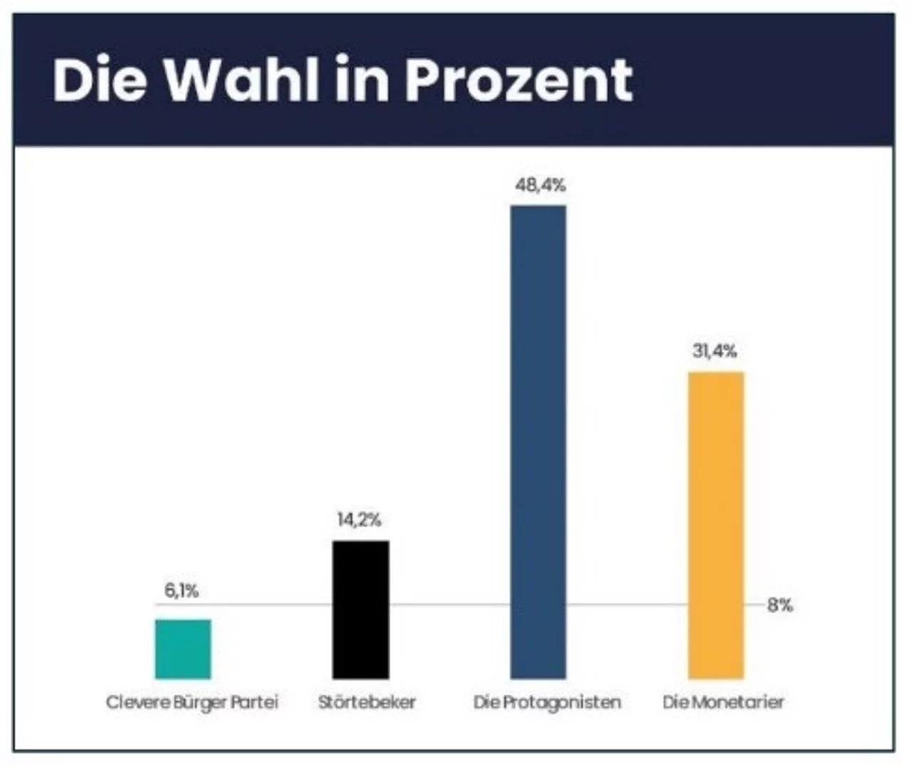 Die sozial-ökologische Partei Störtebeker kam auf 14,2 Prozent und zeigt sich als eine weitere mögliche Option für die Protagonisten, falls ein stärkerer Fokus auf ökologische und soziale Themen gewünscht wird.