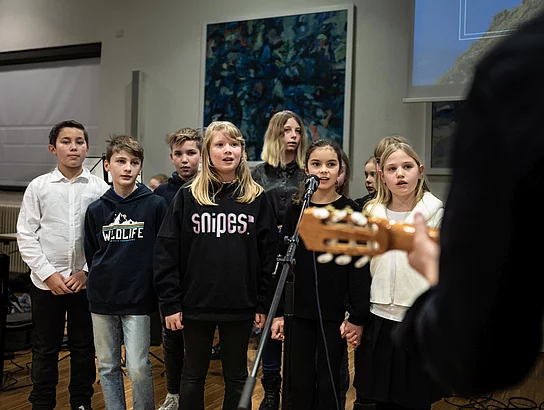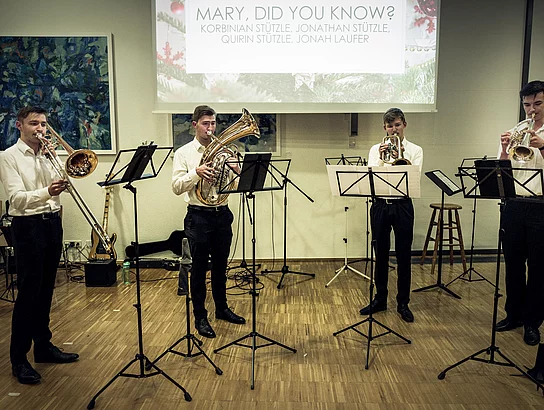 Schubertiaden waren schon früher eine Mischung aus freundschaftlichem Treffen und musikalisch-literarischem Kunstgenuss – gleich zu Beginn erklären die Moderatoren die Idee des Abends. Und tatsächlich fühlt es sich fast familiär an, wenn die jüngeren Schüler mal zart und besinnlich mal lustig beschwingt ihre Lieder zum Besten geben. Dabei hören die Zuschauer nicht nur Werke von Franz Schubert, wie der allseits bekannte „Lindenbaum“ oder klassische Volklieder. Die musikalische Reise führt auch zu modernen Klassikern von Elvis Presley, ABBA und Filmmusik der 60er/70er Jahre. Die Oberstufenschüler sind es schließlich, die das Thema des Reisens musikalisch kreativ verarbeiten. In der selbstverfassen Sprechperformance „Meine Reise“ stellen sie die Frage nach ihrem eigenen Weg, der sie nach der Schulzeit erwartet. Mit eigenen Texten und Arrangements nehmen die Bläser in verschiedenen Besetzungen das Publikum mit und regen zum Mitsingen an.