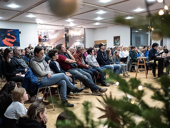 Im Weihnachtskonzert des Gymnasiums Wilhelmsdorf holen die Mitwirkenden das Konzept der Schubertiade in die Moderne. Wie bei den klassischen Hauskonzerten, die schon zu Lebzeiten Franz Schuberts veranstaltet wurden, gestalten Schülerinnen und Schüler des Gymnasiums Wilhelmsdorf einen stimmungsvollen Abend. Dabei nehmen sie die zahlreichen Zuhörer mit auf eine musikalische Winterreise.