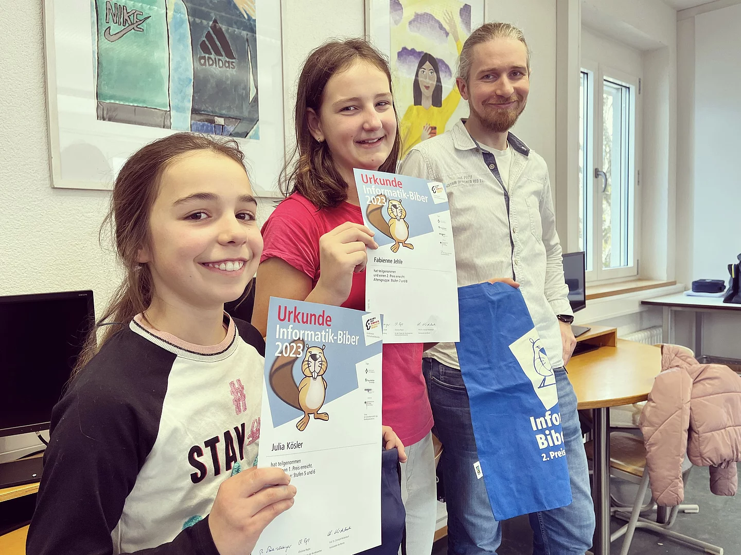 Fabienne Jehle aus der Klasse 7a erreichte mit ihren Leistungen einen 2. Platz und die Sechstklässlerin Julia Kösler löste die Aufgaben so gut, dass sie einen 1. Platz ihrer Altersklasse errang. Damit landet sie unter den besten 3 Prozent ihrer Altersklasse. Tobias Hütter, einer der betreuenden Lehrer, überreichte die Sachpreise und gratulierte den beiden zu ihrem Erfolg.