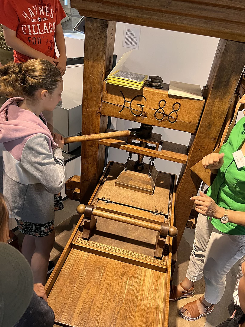 Daneben wurde anschaulich gezeigt, mit welchen Materialien die Bibel kopiert und schließlich gedruckt wurde. Am Ende durften sie Psalm 23 an der Buchdruckpresse drucken! Was für ein lohnender Ausflug!