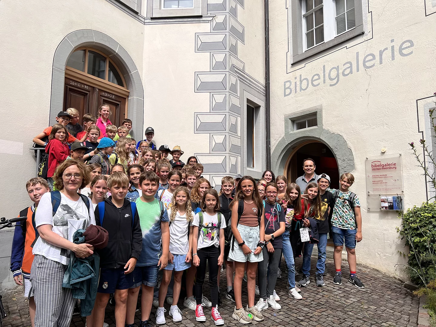 Am 13.7.23 fuhren die katholischen und evangelischen Religionsgruppen der Klasse 5 nach Meersburg zur Bibelgalerie.