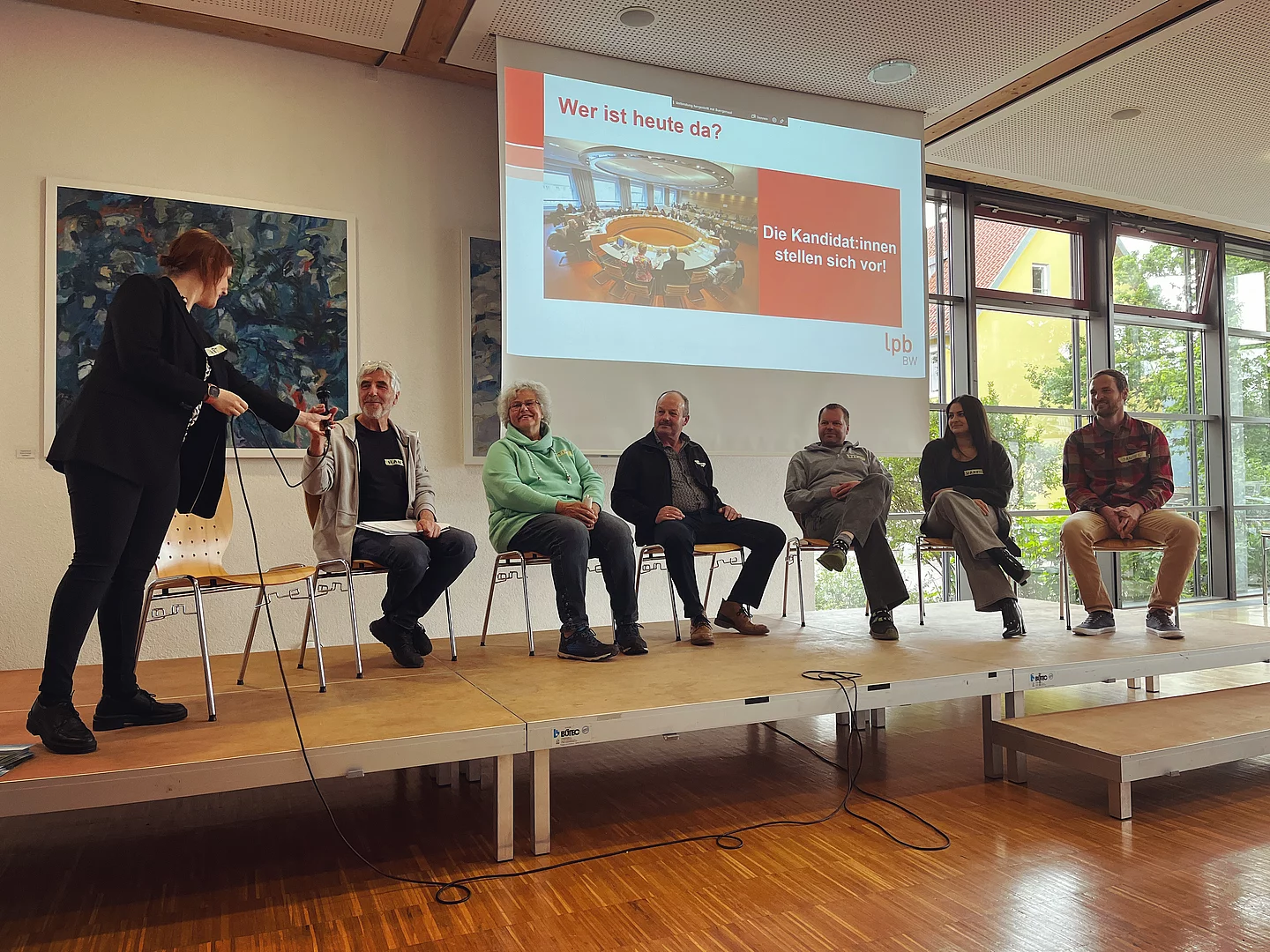 Die Botschaft war klar. Um Kommunalpolitik für die junge Wählergeneration greifbar zu machen organisierte die Landeszentrale für politische Bildung (lpb) eine Podiumsdiskussion, bei der Schülerinnen und Schüler aus Gymnasium und Realschule Fragen stellen durften und eine Auswahl an Kandidat:innen für die kommende Kommunalwahl Rede und Antwort stand.