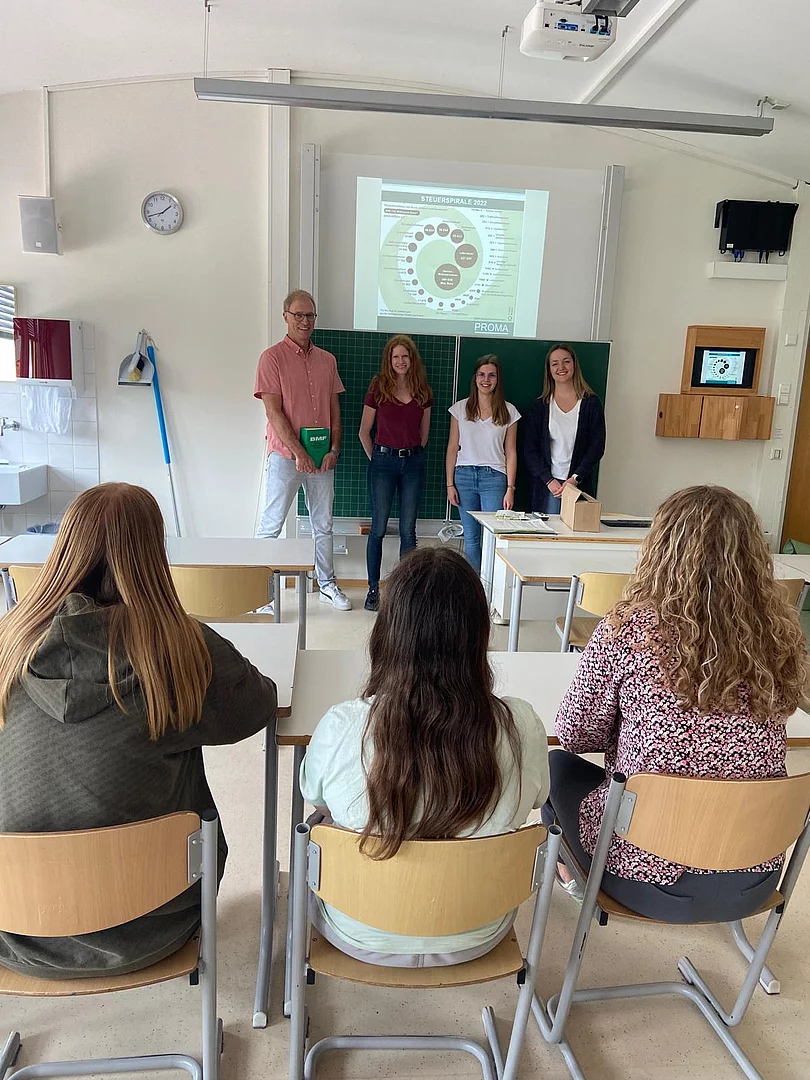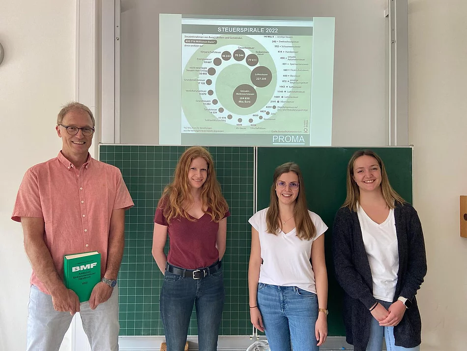 Die Schülerinnen und Schüler der Klassen 9 und der K1 erhielten von den Mitarbeiterinnen und Mitarbeitern des Finanzamts eine Einführung in das Thema Steuern und einen Einblick in die Arbeit der Verwaltungsbehörde.