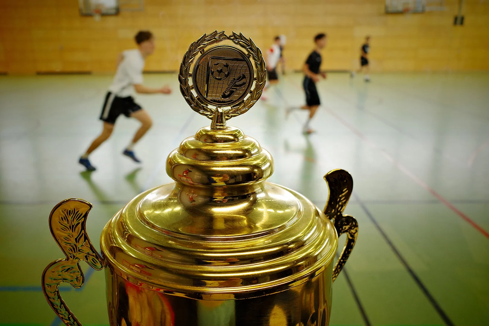 Der Leistungskurs Sport des Gymnasium Wilhelmsdorf erfüllt dieses berühmte Zitat der Fussballlegende Thomas Häßler mit Leben und präsentiert sich beim Hallenfußballturnier der SMV in Bestform. Nach einem durchweg siegreichen Turnierverlauf entscheidet das Schülerteam auch das hochklassige Finale gegen das Allstar-Team der zehnten Klassen mit 3:2 für sich.
