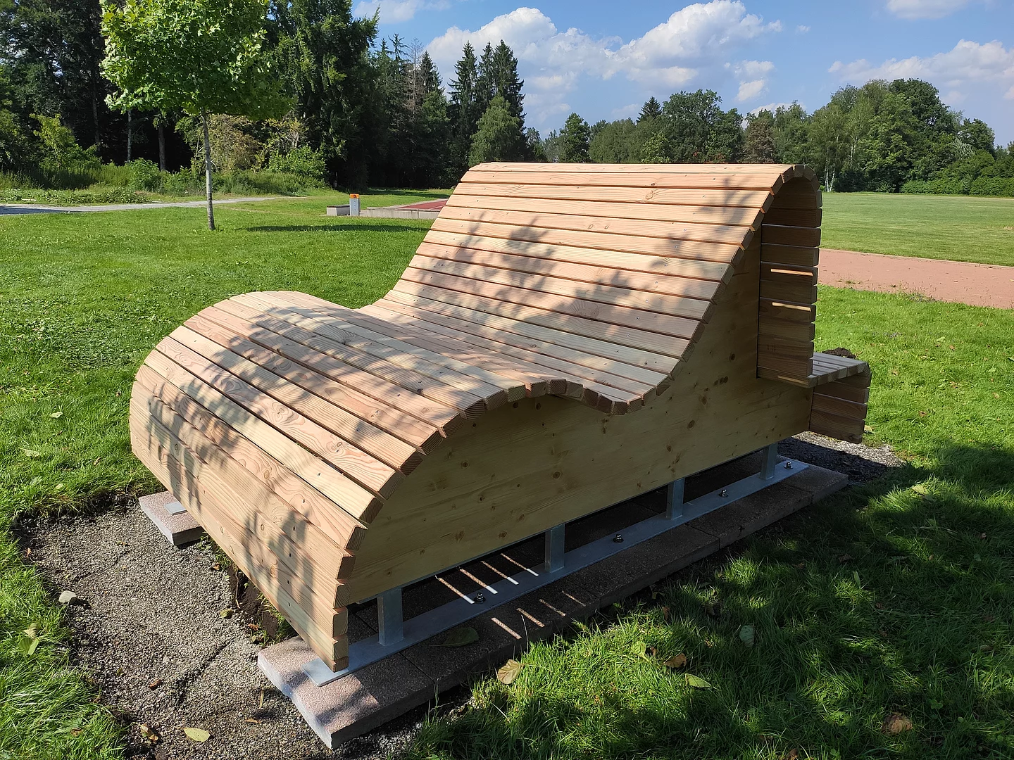 Besonders faszinierend war die Selbstständigkeit und der Fleiß der beiden 10. Klässler auch während der langen Homeschooling Zeit. Obwohl das Freie Kursangebot in dieser Zeit offiziell ausgefallen ist, tüftelten Valentin und Matthias weiter an der Bank. Das entstandene Produkt – eine Kombination aus Sitz- und Liegebank, die seit dem 23.07.2021 unseren Schulhof schmückt – kann sich definitiv sehen lassen! Viel Freude allen Schülerinnen und Schülern beim Probesitzen und Probeliegen!