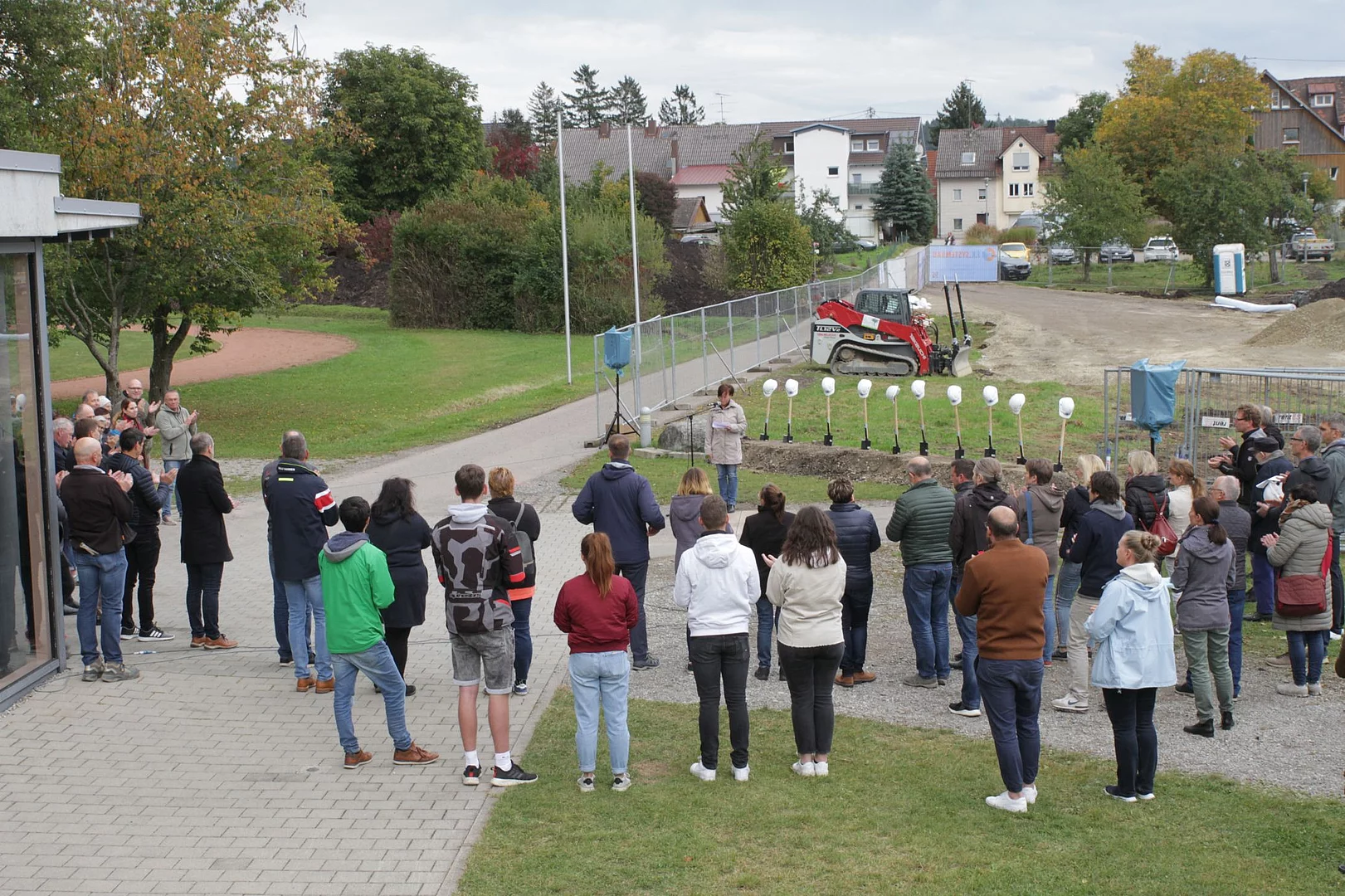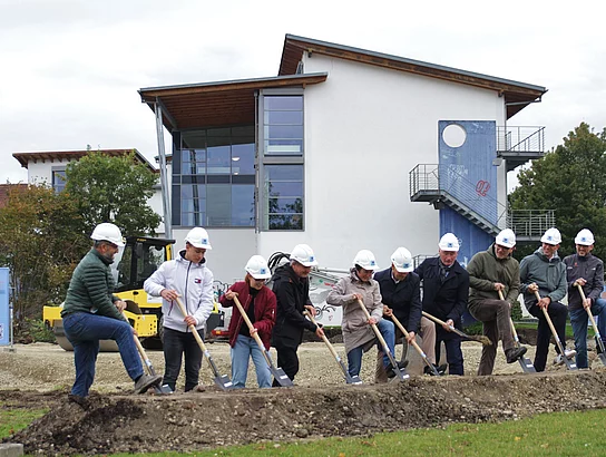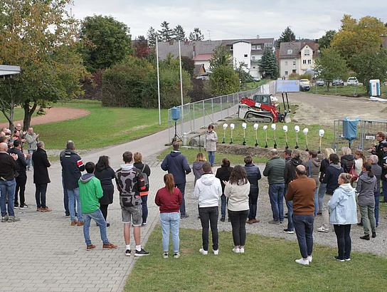 Bürgermeisterin Sandra Flucht eröffnete gemeinsam mit den Schulleitern Michael Dörmann und Thomas Plösser, sowie wichtigen Vertretern der Gemeinde Wilhelmsdorf und den Bauverantwortlichen mit einem symbolischen Spatenstich die aktive Bauphase. Schon zum Schuljahr 2023 können die Schüler die neuen Räume beziehen.