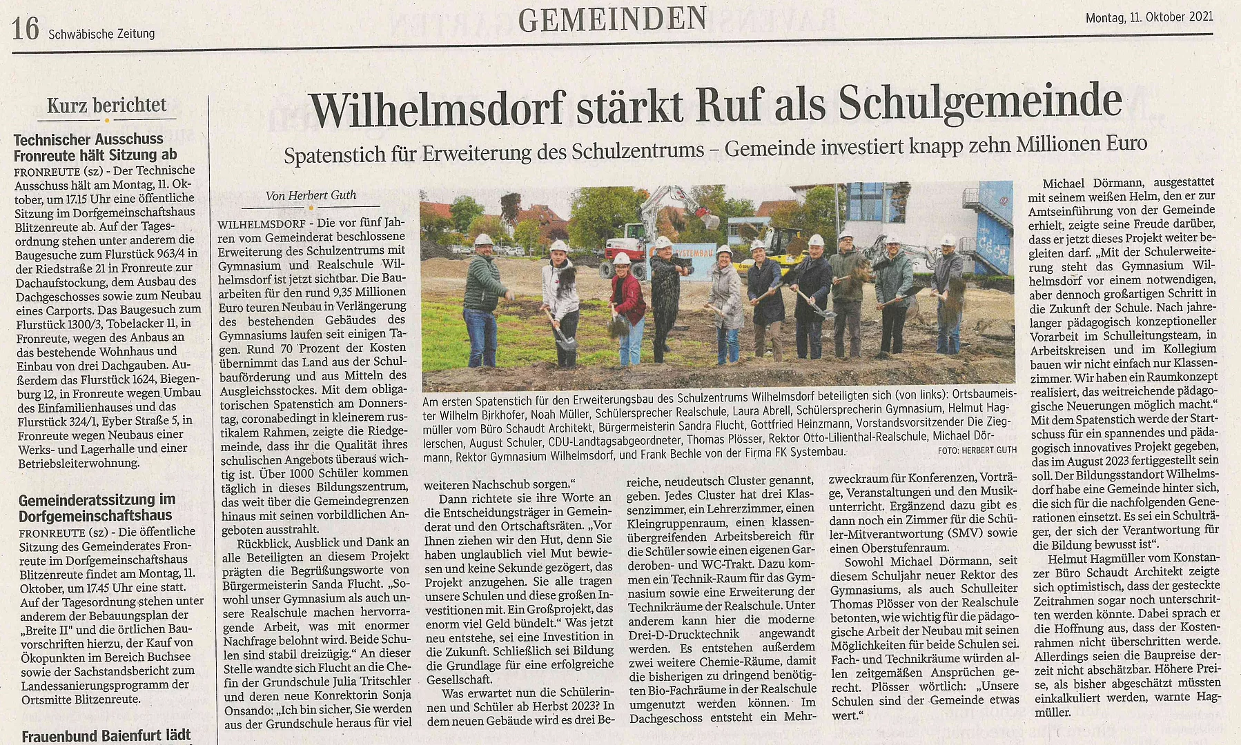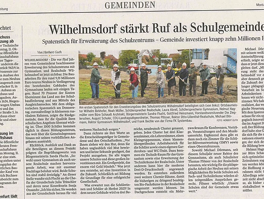 Schulbauerweiterung - Gymnasium Wilhelmsdorf legt den Grundstein für neue pädagogische Wege