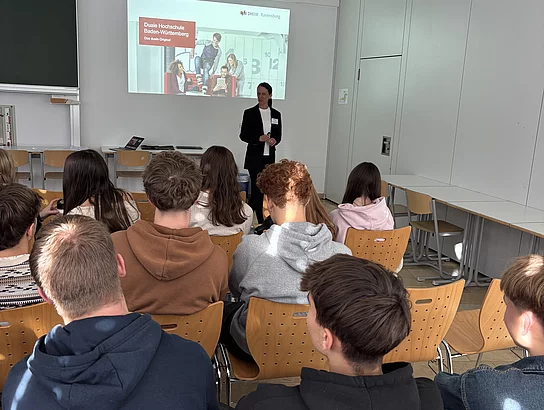 Im zweiten Teil der Veranstaltung informierte Frau Prof. Nübling, Studiengangleiterin für Hotel- und Gastronomiemanagement an der DHBW Ravensburg, über die Struktur und Vorteile des dualen Studiums. Sie stellte die enge Verzahnung von Theorie und Praxis in dreimonatigen Wechselphasen sowie die Vielfalt der Partnerunternehmen in ganz Deutschland vor. Besonders beeindruckend: 80 % der Studierenden würden sich erneut für ein duales Studium entscheiden.