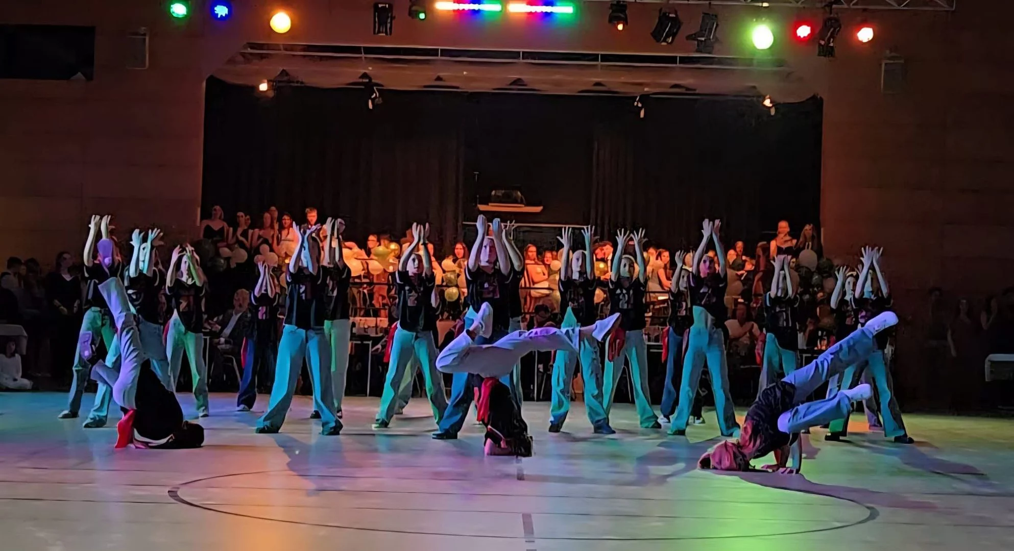 Hochstimmung kam auf, als Jürgen Schlegel schließlich die Schülerinnen und Schüler mit ihren Eltern auf die Tanzfläche bat und einen ausgelassenen Partytanz inszenierte. Als weiterer Höhepunkt zeigten mehrere Turniertanzpaare des ATC Ravensburg Latin-Tänze auf höchstem Niveau.