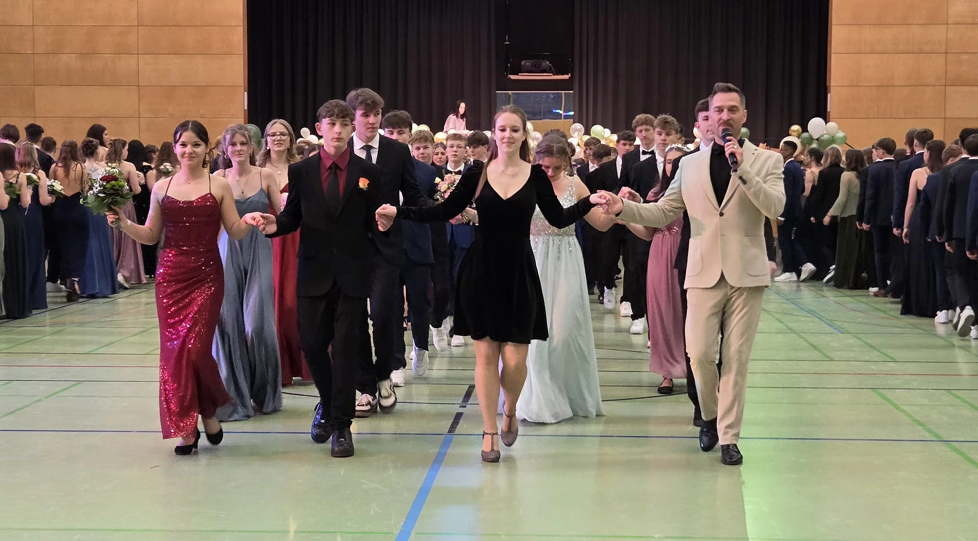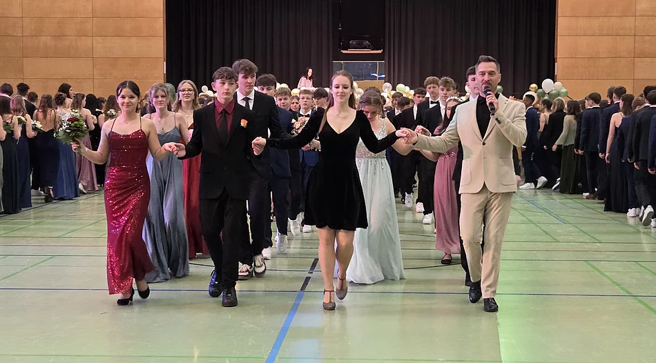 Nach einer gut gelaunten Begrüßung der Tanzkurssprecher beider Schulen präsentierten sich die jungen Tänzer bei der Eröffnungspolonaise und dem ersten Wiener Walzer in perfekter Formation. Danach durften die über 300 Gäste auf die Tanzfläche – und die ließen sich nicht lange bitten, sodass von Anfang an der ganze Saal in bester Stimmung zur Musik von DJ Sebastian schwelgte.