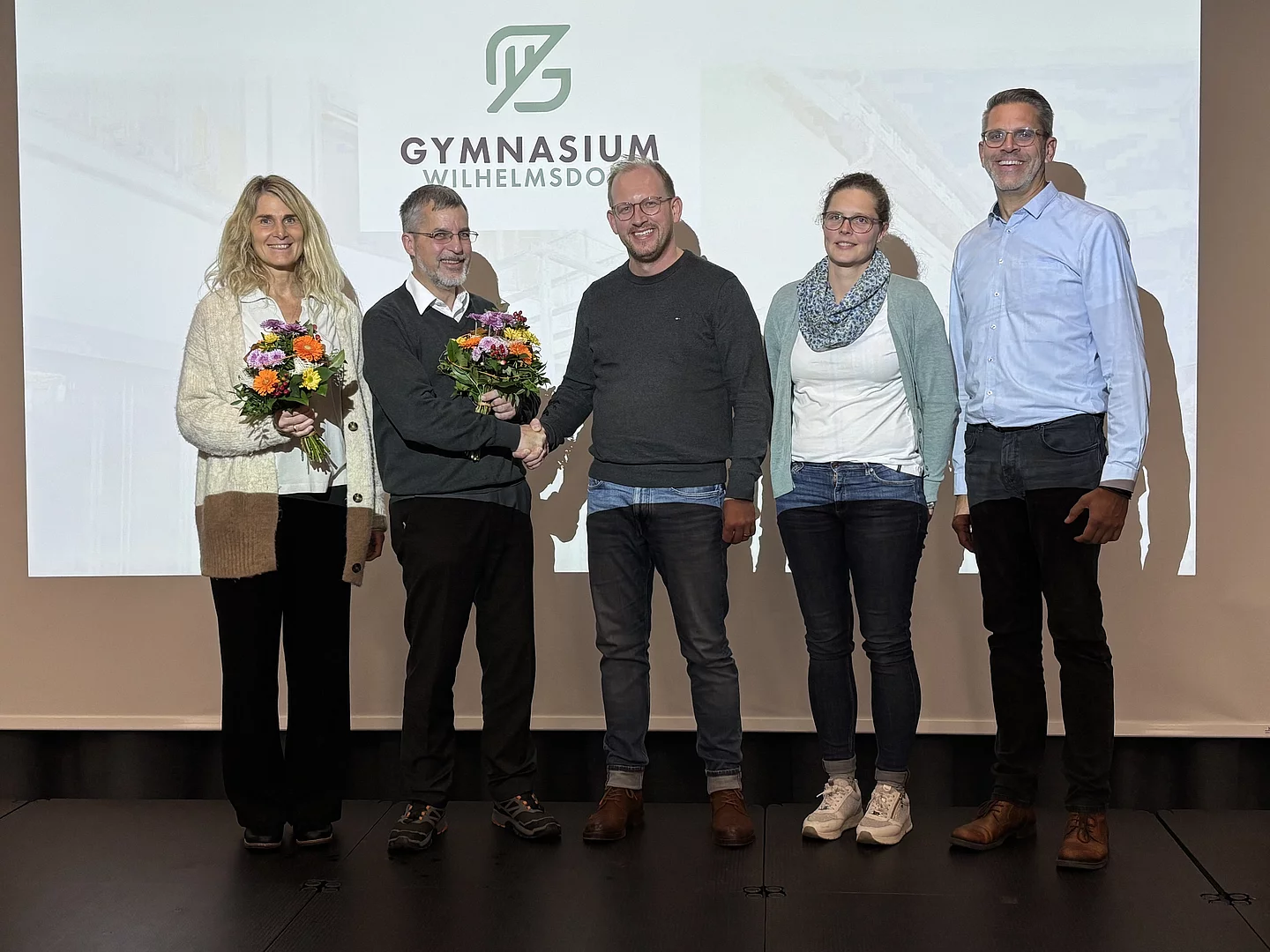 Im Rahmen der jüngsten Elternbeiratssitzung des Gymnasiums Wilhelmsdorf wurden die langjährigen Elternbeiratsvorsitzenden Stefan Buggle (Vorsitzender) und Stefanie Daschmann (stellvertretende Vorsitzende) herzlich verabschiedet. Beide luden vor der Sitzung zu einem gemütlichen Umtrunk mit alkoholfreiem Prosecco und kleinen Häppchen ein, um sich bei den Elternvertreterinnen und -vertretern für die vertrauensvolle und engagierte Zusammenarbeit in den vergangenen Jahren zu bedanken.