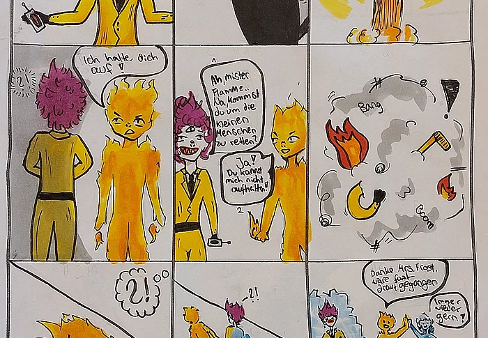In einem jahrgangsübergreifenden Kurs entwickeln Schüler*innen der Klassenstufen 7 bis 9 eigene Comics. Sie wählen unter der Leitung von Juliane Holland einen ganz anderen Zugang zu politischen Themen, Texten und Filmen.