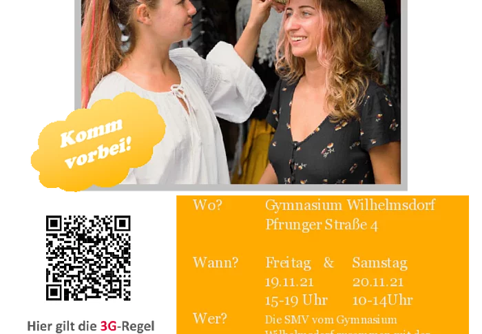 Die SMV des Gymnasiums Wilhelmsdorf veranstaltet am 19. und 20. November 2021 ein Kleideroutlet im Bürgersaal der Gemeinde Wilhelmsdorf. Die Schülerinnen und Schüler unterstützen damit die Partnerschule des Gymnasiums in Uganda.
