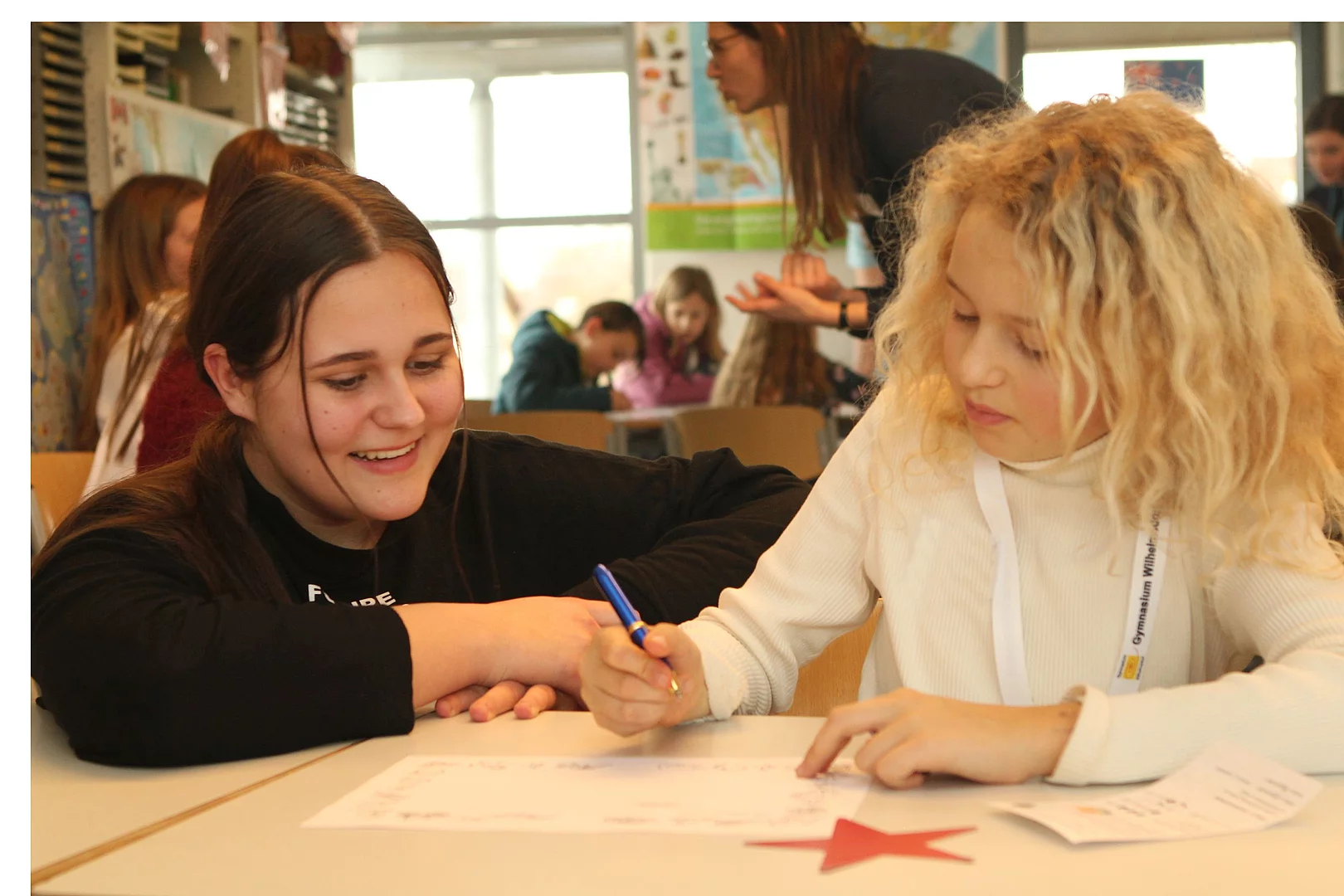 Deshalb gibt es bei uns Schülermentoren, die Jüngeren beim Lernen zur Seite stehen. Eingesetzt werden sie zum Beispiel in der Hausaufgabenbetreuung. Und das Beste ist: Auch die Mentoren profitieren davon. Sie erweitern ihre sozialen Kompetenzen und sammeln pädagogische Erfahrungen.